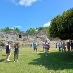 Heute entdecken wir die beeindruckenden architektonischen Stile der weitläufigen Maya-Stadt Kohunlich. Wir sehen tolle freigelegte und aufbereitete Tempelanlagen, ein Ballspielplatz und diverse Wohngebäude der Mayas. Wir erklimmen einen der Tempel und genießen den wundervollen Blick von oben auf den umliegenden Dschungel Mexikos. Der Transfer vom Hafen dauert gut 2 Std., aber in dieser Zeit, vor Allem auf der Hinfahrt, erzählt uns unser Guide Morales viele interessante Punkte zur Maya-Epoche und deren Auswirkunken bis in die heutige Zeit.Read more