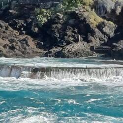 Spektakuläre Serpentinenabfahrt und Naturschauspiel an den Naturpools vor der Küste.