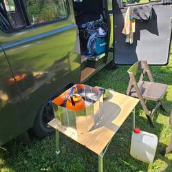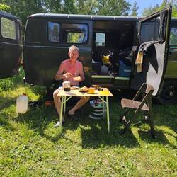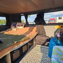 Mit vollem Bäuchlein, Dank Nachbars, hier angekommen, schön geschlummert und gepflegt gebadet.