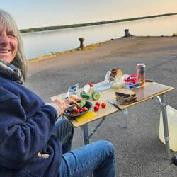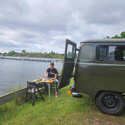 Auf einer winzigen Hafenmole übernachtet und durch die Sonne 🌞 ,welche durch die Buchankafenster schien, geweckt.