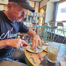 So ist es eben hier, winzigste Nebenstraßen und dann steht da eine Fähre und wartet, dass wir sofort rauf fahren.