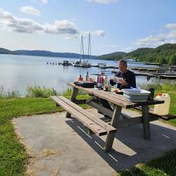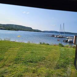 Eine gemähte Wiese lädt für 200SEK zum Übernachten ein, nebst vernünftigen WCs. Das dazugehörige Restaurant veranstaltete gerade einen Kneipenquiz. Auf der Bühne saß ein SolosängergitarristЧитать далее