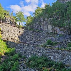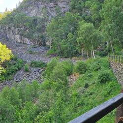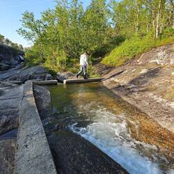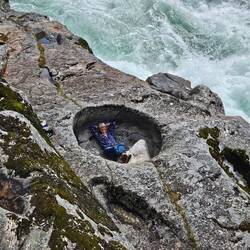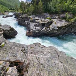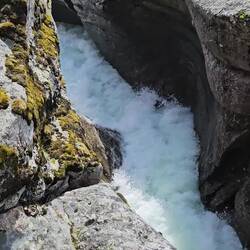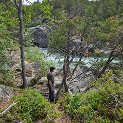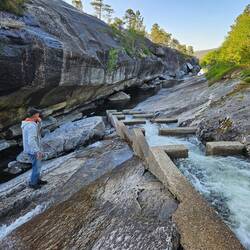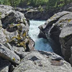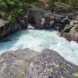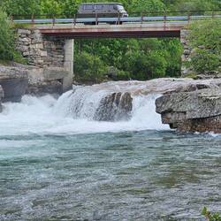 Stromschnellen und ein paar Steine, die mal eine Brücke waren. Das Foto ist aus dem späten 19. Jahrhundert. Die haben damals ein paar Bäume vom Ufer aus rausgeschoben und am Ufer mit SteinenRead more