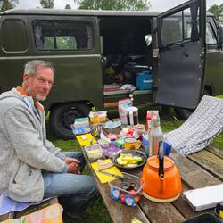 Wiedermal völlig alleine am Wasser mit Bergblick auf einem wunderschönen Rastplatz um zu frühstücken. Das Solarpanel lädt gerade mit 330W unsere Powerbox und betreibt nebenbei dieRead more