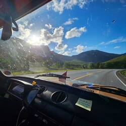 Mal fährt die Karre 2km und dann ist für 3 Minuten Ruhe, dann geht es 5km usw. Wir forschen noch und haben unser Tagesziel erstmal erreicht.