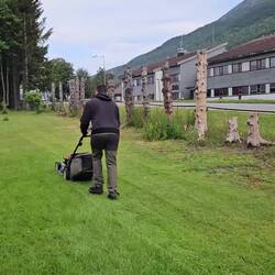 Einem Norweger beim Rasenmähen helfen, war die Aufgabe. Auch gemacht und dokumentiert.