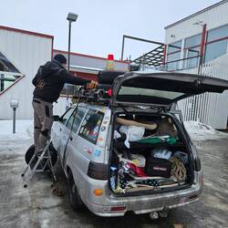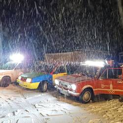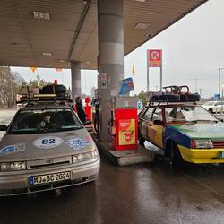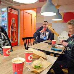 Vorbereitende Gespräche bei Pizza Grandiosa und russischer Schokolade. Dann an den Autos gefriemelt und gefreut. 🙂🙂🙂