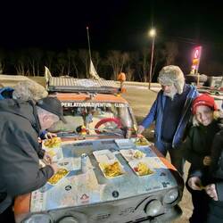 Bei Toms Frau ganz wichtigen Krimskrams gekauft und zwei im Auto schlafende Franzosen getroffen. Wir haben sie mit "Эрзатцруссен" h.c. geehrt.