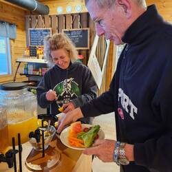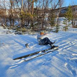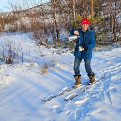 Eine weitere Roadbookaufgabe. Möglichst elegant auf Langlaufskiern stehen und Tee eingießen. Ist gelungen, wie man oder Frau sieht.
