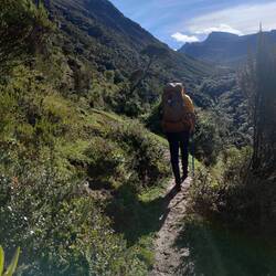 After the finca, our actual hike led up the Cañon de Media Luna to a small peak called Cerro Chispa (4500'). However, the main attractions were, for one, the views of mountains and glaciers in theLeggi altro