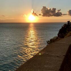 Ich genieße den wunderschönen Sonnenuntergang in dieser herrlichen Lage! Und beschließe, in Corniglia noch etwas zu essen. Es gibt Miesmuscheln, sehr lecker! 😋