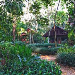 Am späten Nachmittag kommen wir an unserer nächsten Unterkunft - dem Kibale Forest Camp, kurz “KFC” - an. Welch ein toll gelegenes Camp und ganz naturnah mit vielen Bäumen und anderen Pflanzen. Colobus-Affen und Meerkatzen springen von Ast zu Ast. Alles ist saftig grün und es duftet tropisch, wie schön!