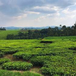 Dann fahren wir weiter Richtung Süden. Es wird immer grüner, große Teeplantagen breiten sich vor unseren Augen aus. Die Teepflücker werden nach Gewicht bezahlt, erklärt uns Robert. Gepflückt werden die hellen zarten Blätter. Teilweise arbeiten die Teepflücker mit großen schalenförmigen Scheren. Auf diese Weise landen jedoch auch die minderwertigeren kräftigeren Blätter im Sack. In diesen großen Säcken werden die Teeblätter dann in die Fabrik gefahren, wo die Fermentation und Verarbeitung stattfindet. Für die Teepflücker und ihre Familien gibt es eigene Dörfer.