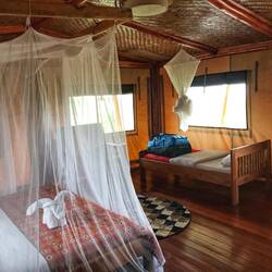 Unglaublich ist auch, wie die Bananenstauden auf dem Moped transportiert werden. Das Moped ist hier - neben Bussen und Fahrrädern - ein häufig zu sehendes Transportmittel. Es wird einfach alles darauf transportiert - mehrere Menschen, Bananen, Wasserkanister, Matratzen, Hausrat, Möbel... Unglaublich, wie geschickt die Fahrer packen und mit ihrer schweren Last auch auf sehr holprigen und löchrigen Straßen fahren!