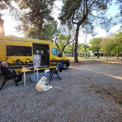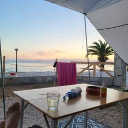 Nach Olympia und durch und durch Nass erreichen wir unseren Campingplatz. Der Campingplatz ist ein Traum. Die Lage mit Palmenbesäumtem Strand ist grandios. Die Taverne dazu hatte noch den letzten TagBaca selengkapnya