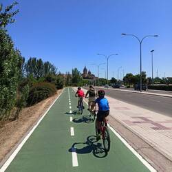 Parcheggiamo vicino al Huertos Urbanos di Salamanca e poi in bicicletta ci dirigiamo in centro.