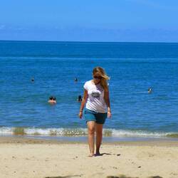 Am Strand angekommen habe ich direkt meine Schuhe ausgezogen um den feinen staubartigen weißen Sand an meinen Füßen zu spüren, der Sand dort ist so fein, dass er beim Laufen quietscht, als würde man auf Schnee laufen...