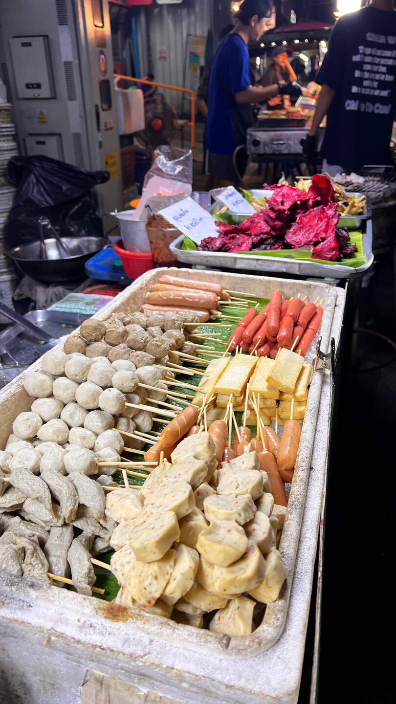 Am besten haben uns die Foodmärkte gefallen, oft sogar mit Live Musik, sehr gutem Essen und Getränken. Wir haben Gyozas (gefüllte gebratene Teigtaschen), Mango stickyrice und vieles mehr probiert. Hier haben wir immer geschaut, dass das Essen frisch zubereitet wurde und gekühlt war, damit wir kein Risiko für den Magen eingehen, sicher ist sicher :-D. Bei der Schärfe muss man auch sehr aufpassen, wir essen zwar beide gerne scharf aber in Thailand versteht man darunter etwas anderes. Selbst wenn wir nicht scharf bestellen, brennt es sehr 🔥