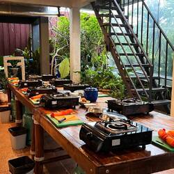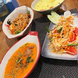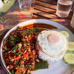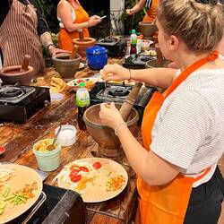 Eines unserer Highlights war ein Kochkurs. Wir lieben das Essen hier sehr und wollte mehr darüber lernen. Wir wurden am Hotel abgeholt und sind gemeinsam mit 7 anderen zu einem Local Markt gefahren, dort haben wir viel über die Thailändische Küche und dessen Zutaten gelernt. Gekauft haben wir dort nichts,: „das ungekühlte Fleisch ist nichts für eure Mägen, wir Thailänder können das Essen, für Euch haben wir es besser im Supermarkt gekauft“ sagte der Koch mit einem Lachen. In Thailand gibt es kein typisches Frühstück, Mittagessen oder Abendessen, hier isst man immer worauf man gerade Lust hat und am besten alles mit Reis. Viele Dinge die wir auf dem Markt gesehen haben gibt es bei uns gar nicht wie z.B. mini Auberginen (sehen aus wie große Erbsen). Wir haben insgesamt vier Gerichte gekocht, Pad Thai, Papaya Salat, Phanaeng Curry und Khao Soi. Die Gerichte zu beschreiben wäre jetzt zu lang aber sie waren alle köstlich. Wir haben auch gelernt, dass Thailänder ein komplett anderes Verständnis von Schärfe haben… wir haben zwei kleine grüne Chilis für unseren Papaya Salat verwendet und es war grenzwertig scharf (wir können eigentlich sehr gut scharf essen), der Koch hat 5 rote Chilis verwendet (diese sind deutlich schärfer als grüne)…. Also auch wenn man gerne und gut scharf isst sollte man in Thailand wirklich aufpassen :-D.