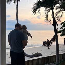 Neben unserem Haus ist ein kleines Resort mit Bar am Strand, hier können wir abends immer entspannen und noch etwas trinken, Mika entspannt dabei in der Trage. Generell ist er sehr entspannt und macht alles super mit, ich glaube das Leben am Meer und auf Reisen gefällt ihm :).