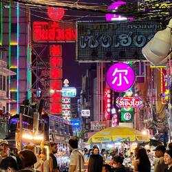 Zurück in Bangkok haben wir dort noch einen Tag geplant, das ist für uns entspannter als direkt den langen Flug nach Frankfurt anzutreten. Der letzte Tag in Bangkok war schön, die Sonne kam raus, es war sehr warm. Wir waren in dem wunderschönen Cafe in der Nähe des Hotels in dem wir am Anfang schon mal waren, sind mit der Fähre über den Fluss gefahren in einem der größten Shoppingcenter dort haben wir etwas Zeit verbracht. Davon waren wir total geflasht, es war riesengroß und bunt. Später sind wir dann noch mit dem Tuktuk ein bisschen durch die Stadt gefahren um abends über die Straßen in Chinatown zu schlendern. Chinatown ist sehr sehenswert, dort gibt es natürlich einen riesigen Nachtmarkt und viele bunte Schilder und Lichter.