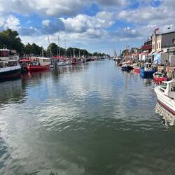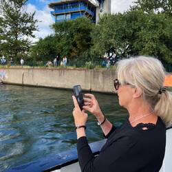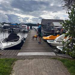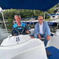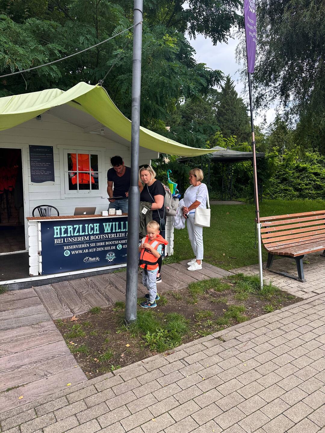 Wir verbringen den Tag mit Margitta und Wolfgang in Bad Saarow. Zuerst shippern wir mit einem Boot mit Elektromotor über den Scharmützelsee und dann essen wir lecker im Café Dorsch.