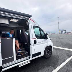 Nach einer aufregenden Nacht im Camper fahren wir zum Fährterminal. Wir sind kurz vor 8 Uhr da und warten geduldig bis zum Start um 9 Uhr.