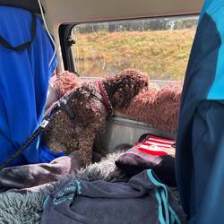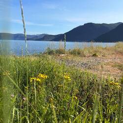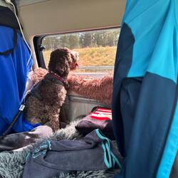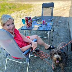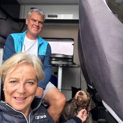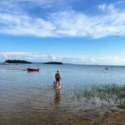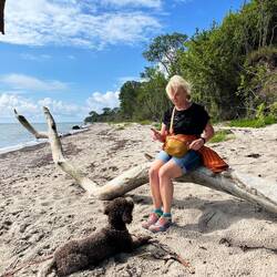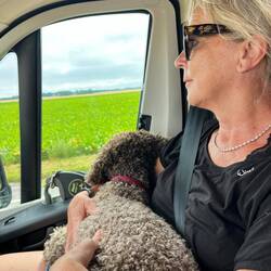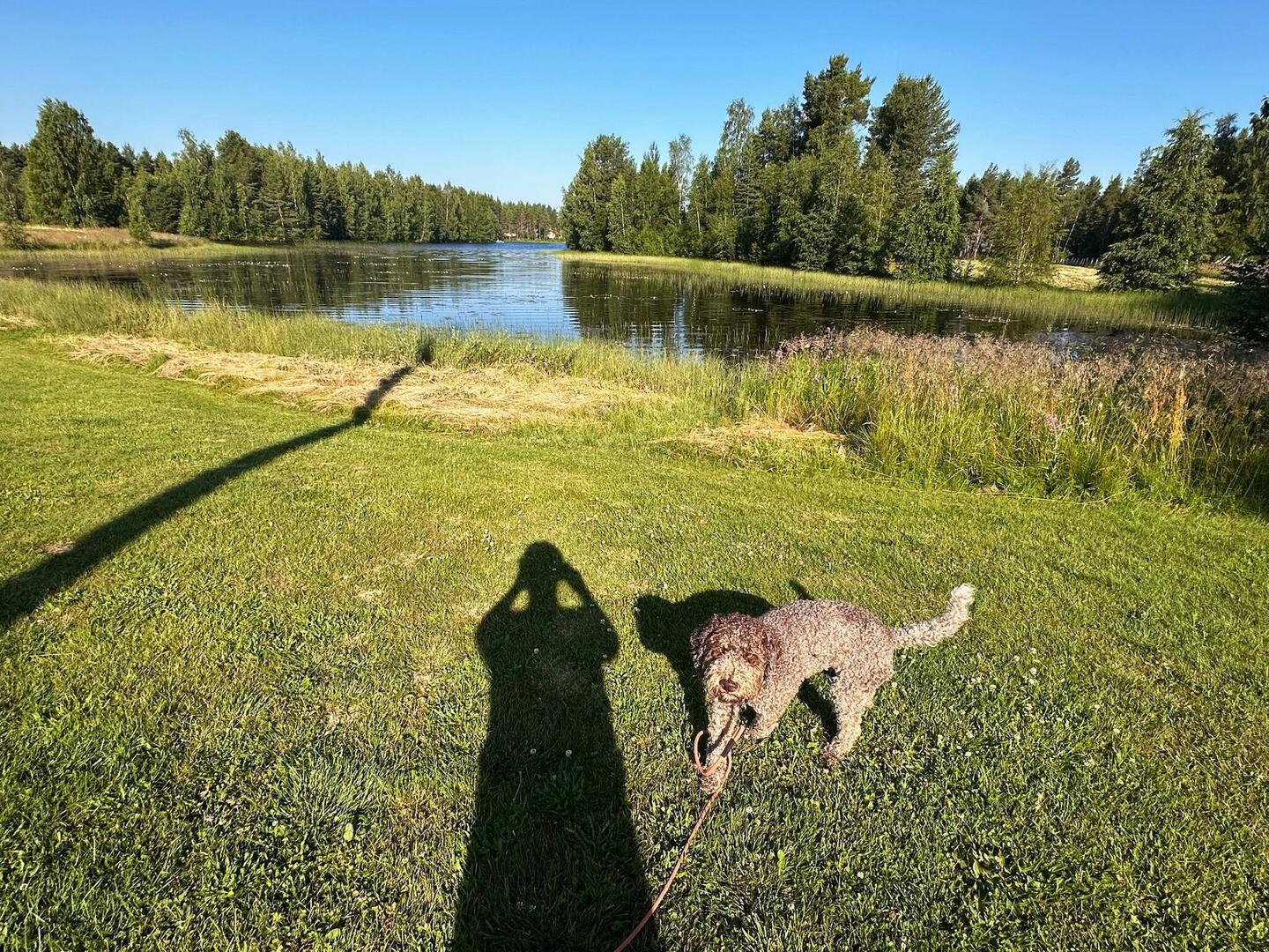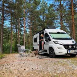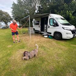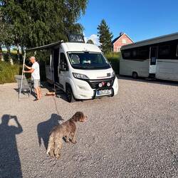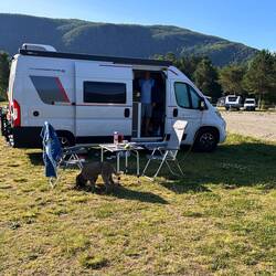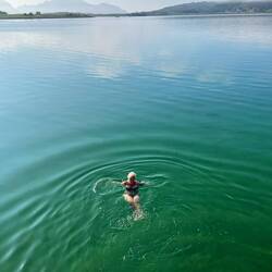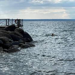 Gut ausgeschlafen werden wir um 7:30 Uhr durch unseren Wachhund Giulia geweckt. Sie nimmt ihre Sache sehr ernst und verteidigt den Camper lautstark . Wir gehen zum See und baden. Nach einem leckerenLæs mere