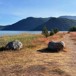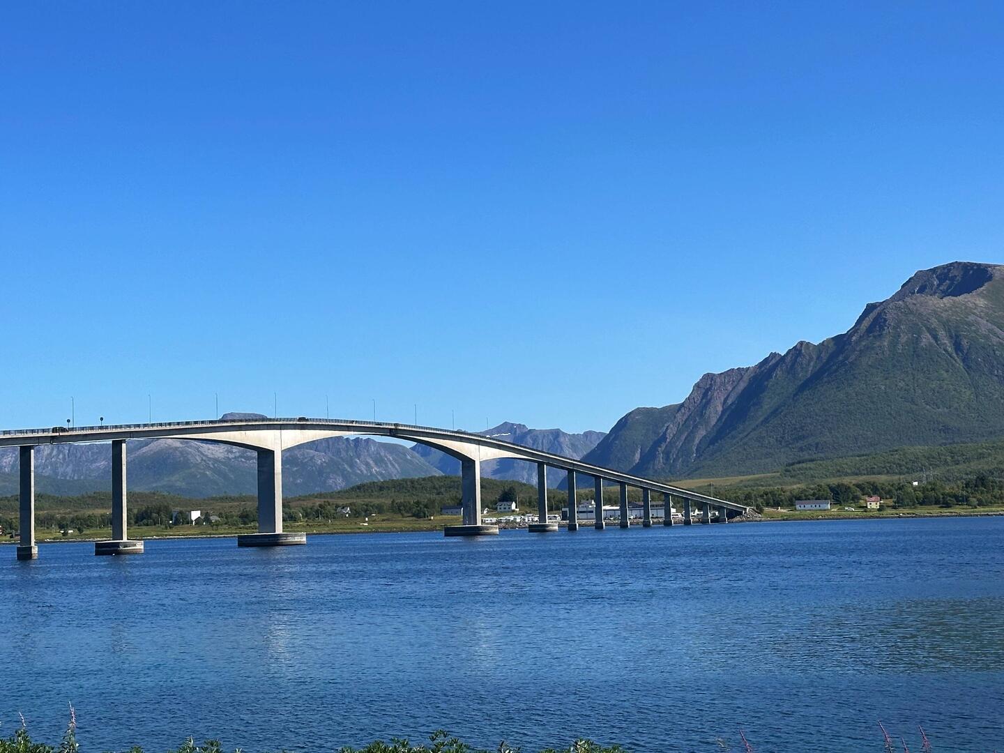 Wir werden 6:00 Uhr von Giulia geweckt. Um 7:30 Uhr verlassen wir Notvann Camping Richtung Bogenes auf der E6. Es sind früh schon 23 Grad. Ein Wahnsinn. Wir sind so fix, dass wir die Fähre um 8:15Læs mere