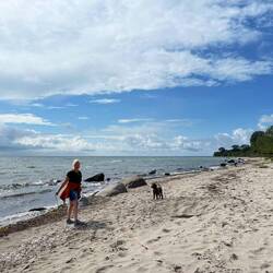 Wir stehen im Sonnenschein auf und frühstücken draussen. Danach machen wir uns für die Fahrt nach Gedser fertig. Wir kommen 10:30 Uhr los und 17:00 Uhr im Ulslev Strandcamping an. ZwischenstoppLæs mere