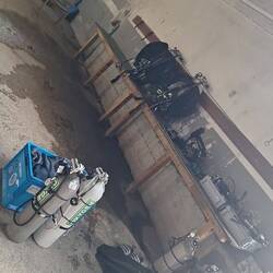 Kurz vor 9 Uhr sind wir dann beim Bergwerk. Jonas, der Besitzer, erklärt uns noch die Füllstation. Hier wird mit der Partialdruckmethode gefüllt. So sind wir in den nächsten Tagen in der Lage, selbstständig zu füllen, denn Jonas wird erst am Samstag wieder vor Ort sein.