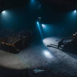 Leider haben sie etwas Sediment aufgewirbelt, sodass in einem Raum die Sicht nicht besonders gut ist. 🫣 Erst im zweiten Raum wird die Sicht deutlich besser, gut genug für Fotos. Wir setzen erneut die Lichter. Und dann entdecken wir sie: eine Maschine, die wir hier noch nie zuvor gesehen haben. Also starten wir direkt das zweite Fotoshooting des Tages. 😍