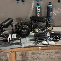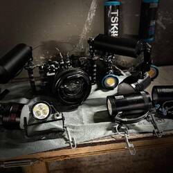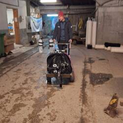 Wir hatten einiges dabei: Insgesamt acht Tauchflaschen, dazu zahlreiche Lampen. Vor Ort luden wir alles aus, bereiteten unser Equipment vor und besprachen in Ruhe unseren Tauchplan. Auch ein Bekannter, den wir letztes Jahr im November hier kennengelernt haben, ist heute vor Ort. Gemeinsam besprechen wir ein mögliches Fotoshooting, falls wir uns unter Wasser begegnen.