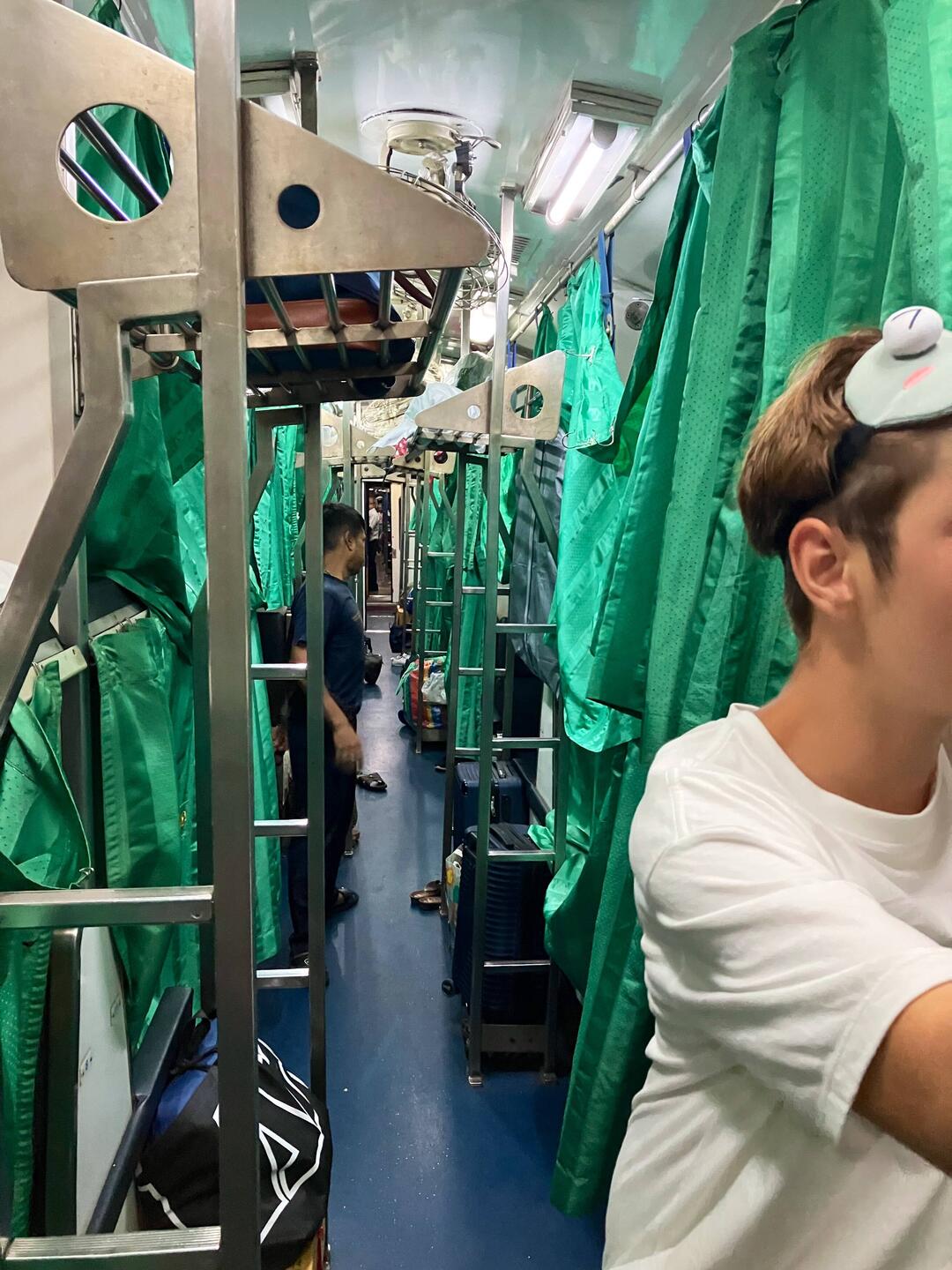 Yes our adventures slowly come to an end. First etappe on our way back is the night train from chumphon to bangkok. Ca 8 hours but we have something you can call a bed. There is ventilation (no airconLæs mere