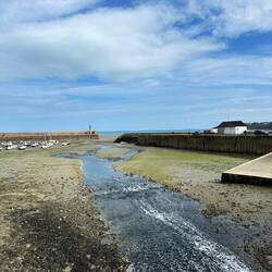 Ein traumhafter türkisfarbener Meerblick veranlasste uns zu einem Bumel durch Étables sur Mer. Leider kommen die Farben nicht richtigBaca lagi