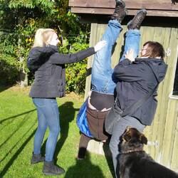 Sonne macht erstmal übermütig, also machte ich mich -wenig altersangemessen- an den Versuch eines Kopfstands bzw. "zum Affen", mit Hilfe gelang es dann aber!