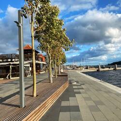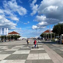 Zwischstopp in Zoppot. Danzig, Gdynia und Sopot bilden die sog. Dreistadt, wobei Sopot eine Kurstadt ist und einen ziemlichen Gegensatz zu den Schwesterstädten bildet.Baca lagi