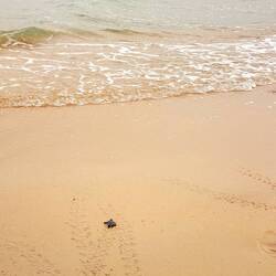 Am fünften Tag in Malaysia lernen wir Oliver kennen: 7 Zentimer groß, gerade einmal 16 Stunden alt aber voller Lebensenergie. Oliver ist eine von 111 Meeresschildkröten, die in einer Aufzuchtstation geschlüpft ist.