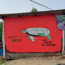 Leider ist es in der Praxis etwas anders: Schildkröteneier gelten als Delikatesse, weshalb sie meist schnell von Händler:innen wieder ausgegraben und verkauft werden. Um dieser traurigen Praxis etwas entgegen zu setzen, kauft die NGO, bei der wir zu Besuch sind, die Eier zurück und vergräbt sie an einem sicheren Ort. Sobald die Schildkrötenbabys geschlüpft sind, werden sie ins Meer entlassen.