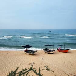 Neben den Menschen begegnen wir hier immer wieder verschiedenen Affenarten, die hier leben und uns ganz unterschiedlich begrüßen: Die frechen Makaken leben mehr am Boden, als auf Bäumen und haben keinerlei Scheu vor Menschen. Im Gegenteil: In der Innenstadt von Prachuap Khiri Khan entreißen sie uns eine Tüte und klauen zwei der vier Brötchen, die wir zum Mittagessen gekauft hatten. Die Einheimischen können die Makaken besser kontrollieren: Sie werden als Nutztiere gehalten und darin trainiert, Kokosnüsse zu pflücken und vom Baum nach unten zu werfen. Immer wieder begegnen uns Autos und LKW auf dem Weg zur Ernte, auf denen neben den Arbeitern auch zwei bis vier Erntehelfer-Affen mitfahren.