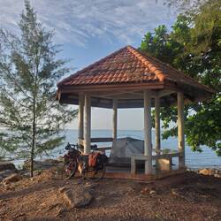 Wenn man auf einer Radtour Wünsche frei hätte, wären flaches Terrain, Rückenwind, guter Straßenbelag, genug Platz, Meerblick und eine einfache Versorgungslage ganz oben auf der Liste. Irgendetwas muss in der letzten Woche richtig gelaufen sein, denn auf der flachen, gut asphaltierten Küstenstraße schiebt uns der Südwind immer weiter in Richtung Thailand. Nach den vielen Höhenmetern in Indonesien macht es Spaß, schnell voranzukommen. Der Verkehr ist meist moderat und die Seitenstreifen breit und so fliegen die Kilometer nur so an uns vorbei. Mehrere Tage hintereinander schaffen wir wieder dreistellige Etappen und fallen abends zufrieden auf unsere Isomatten.
