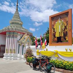 Bangkok wirkt etwas herausgeputzter als ihr Umland und - hatten wir uns schon auf eine Verkehrslawine wie in Jakarta eingestellt - seltsamerweise sehr ruhig. Beides hat vielleicht etwas mit dem heutigen 91. Geburtstag der Königmutter Sirikut zu tun, der - ebenso wie andere royale Geburtstage - mit einem landesweiten langen Wochenende gefeiert wird.
