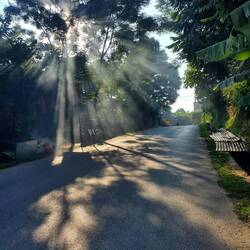 Wie in Indonesien gibt es keine Autobahn. Alle Verkehrsmittel müssen ganz demokratisch über die gleiche einspurige Hauptraße - immerhin führt diese durchs Flachland und ist deutlich breiter, als in Indonesien. Abgesehen von den Hauptstraßen, die sich strahlenförmig aus der Hauptstadt durch das Land ziehen, sind nur wenige Straßen asphaltiert, was in der Regenzeit dazu führen kann, dass Nebenstraßen für Fahrräder unpassierbar werden. Die Tage sind hier zwar besonders heiß, doch ein- bis zweimal täglich regnet es wie aus Kübeln und die Pfützen werden wieder aufgefüllt. Wir bleiben daher auf dem Asphalt und winken den vielen Schüler:innen zu, die ihren Heimweg auf dem Fahrrad bestreiten.Leggi altro