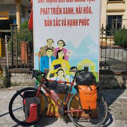 Bevor es nach China geht, genießen wir noch einmal das entspannte Radeln in Südostasien. Je weiter wir uns von Hanoi entfernen und auf Nebenstraßen entlegenere Örtchen passieren, desto mehr fallen wir auf und desto interessierter sind die Menschen. An einem Stand am Straßenrand wollen wir eigentlich nur Pomelos kaufen, werden aber gleich zum Mittagessen eingeladen und bleiben danach noch auf einen Tee. Wir machen unterwegs wieder viele Fotos mit Jugendlichen und finden Abends einen Zeltplatz an einem Dorfplatz, auf dem das halbe Dorf abends noch gemeinsam Volleyball spielt. Lange zittern wir noch bei jedem Motorengeräusch in der Nähe, ob wieder Polizisten kommen und uns wegschicken, aber alles bleibt ruhig und auch am nächsten Morgen können wir ganz ungestört ausschlafen und einpacken. Die Landschaft rechts und links des Roten Flusses wird bergiger und wir gewöhnen uns wieder an kurvige Straße, die uns die Berge langsam hinauf und schnell hinab führen.