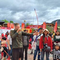 Zhashi, 24, führt uns über den hipp eingerichteten und seht detailreich gestalteten Campingplatz, auf dem es u.a. ein Outdoor-Kino und einen Kayak-See gibt. Wir dekorieren unser Zelt entsprechend mit einer ausgeliehen Lichterkette (#glamping), nehmen an einem Crashkurs für tibetische Kreistänze teil und können uns dann an der Zapfanlage der Bierhütte bedienen.