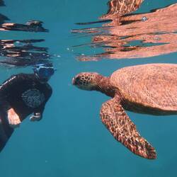 Die Sicht war 1te Klasse und wir sahen einige Fische, Sepien, Shrimp's und erneut Schildkröten. Beim Abtauchen haben wir beide Delfingeräusche gehört. Nach dem wir aus dem Wasser kamen sahen wir am Horizont Hawaiian Spinner Delfine🐬 was für ein Glück❤️