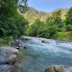 Today's walk was classified as "challenging," and it was. After leaving Martigny, the track followed the Dranse River and the train line. The track was narrow, rough, and unstable (obvious rockもっと詳しく