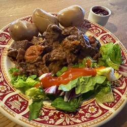 Am Abend lassen wir uns dann Høgryggryte, ein Schmorrgericht, schmecken und hoffen darauf morgen bei besseren Wetter die Landschaftsroute Sognefjellet fahren zu können.Read more