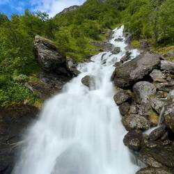 Übrigens: Während am Vortag noch Sommerhitze auf der Apfelstraße herrschte, holten wir am Wasserfall schon dicke Jacken und Mützen aus der Versenkung. 4 Jahreszeiten an einem Tag trifft es in Norwegen wirklich gut. ❄️☀️🌧️🌪️Read more
