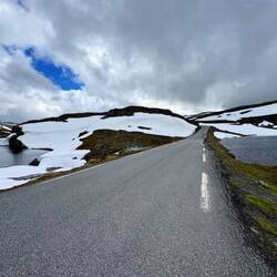 Heute fahren wir eine Landschaftsroute die auch Snøvegen, also Schneeweg, genannt wird.